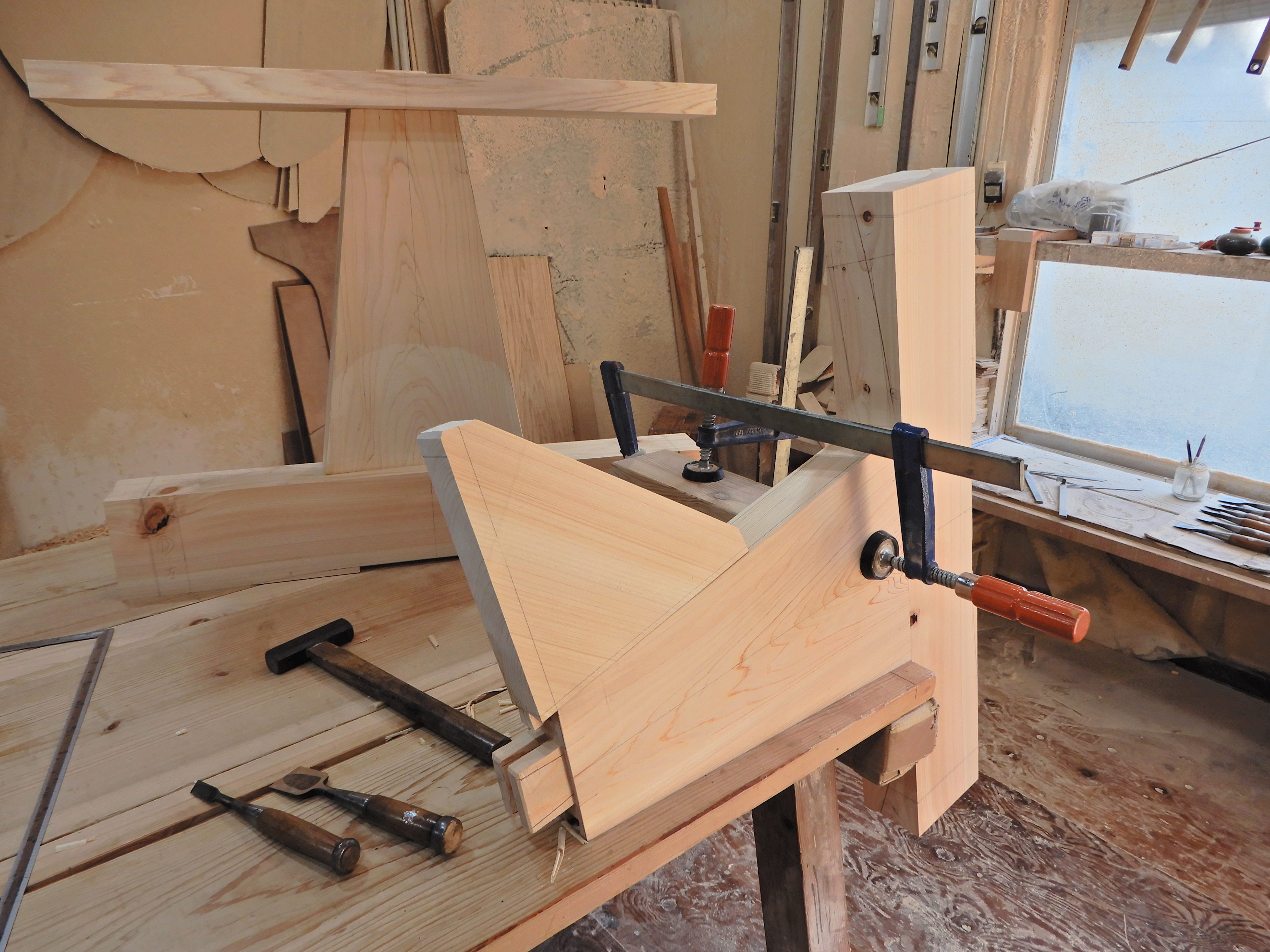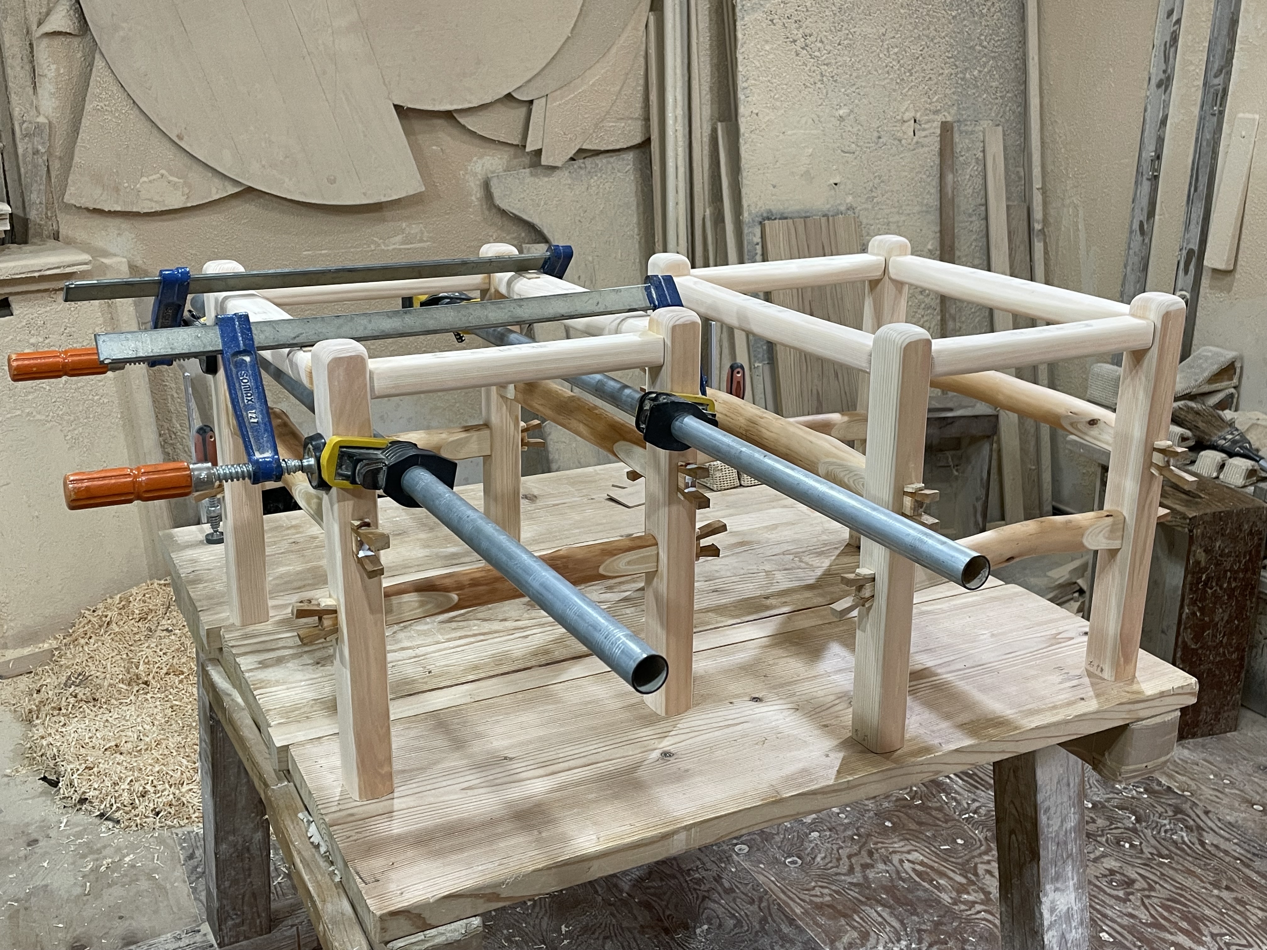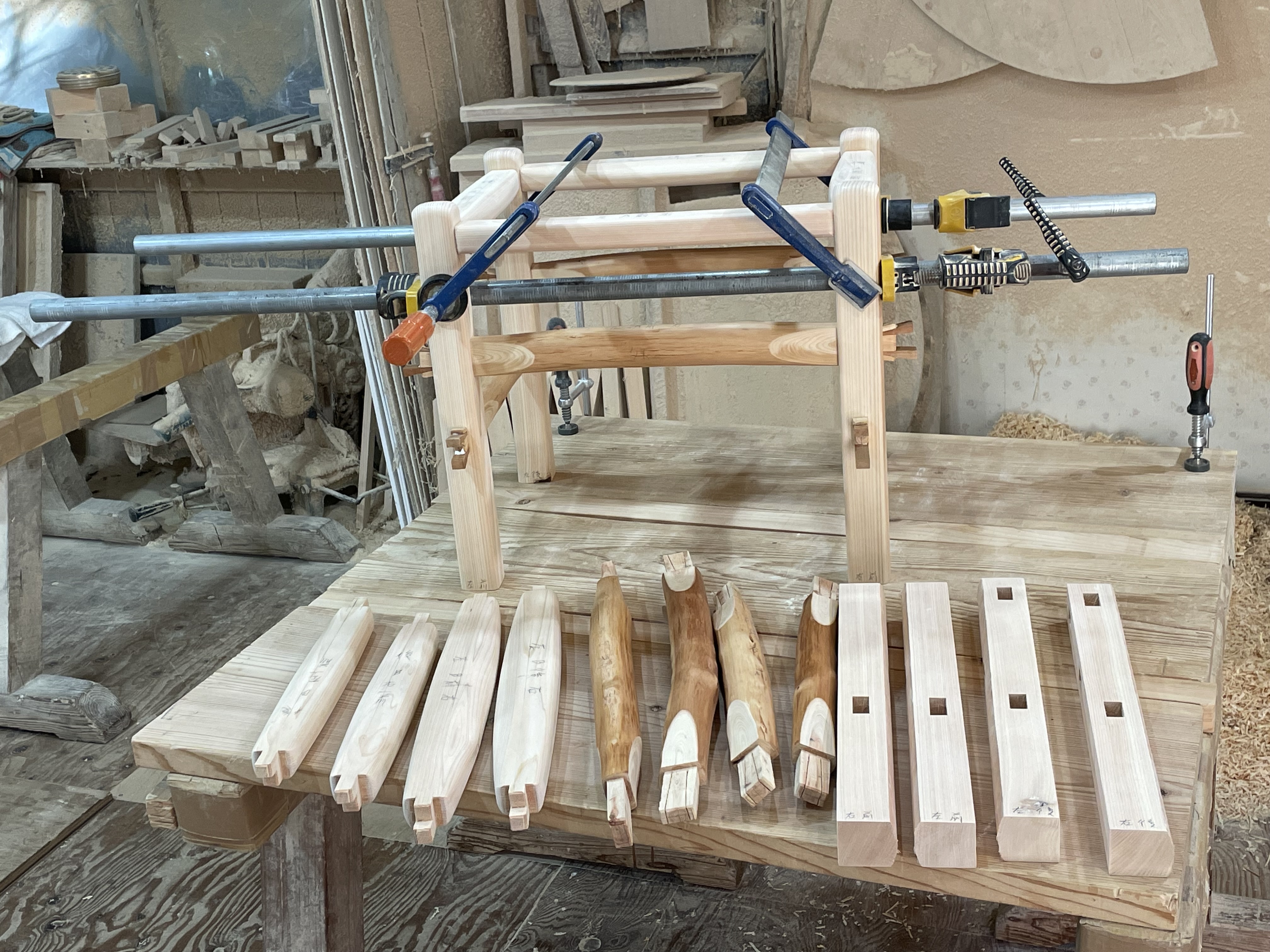 4人掛けテーブルを作っています、強度を高めるため、曲面に作っていますが、それが、思った以上に大変で、完成は来週になります。