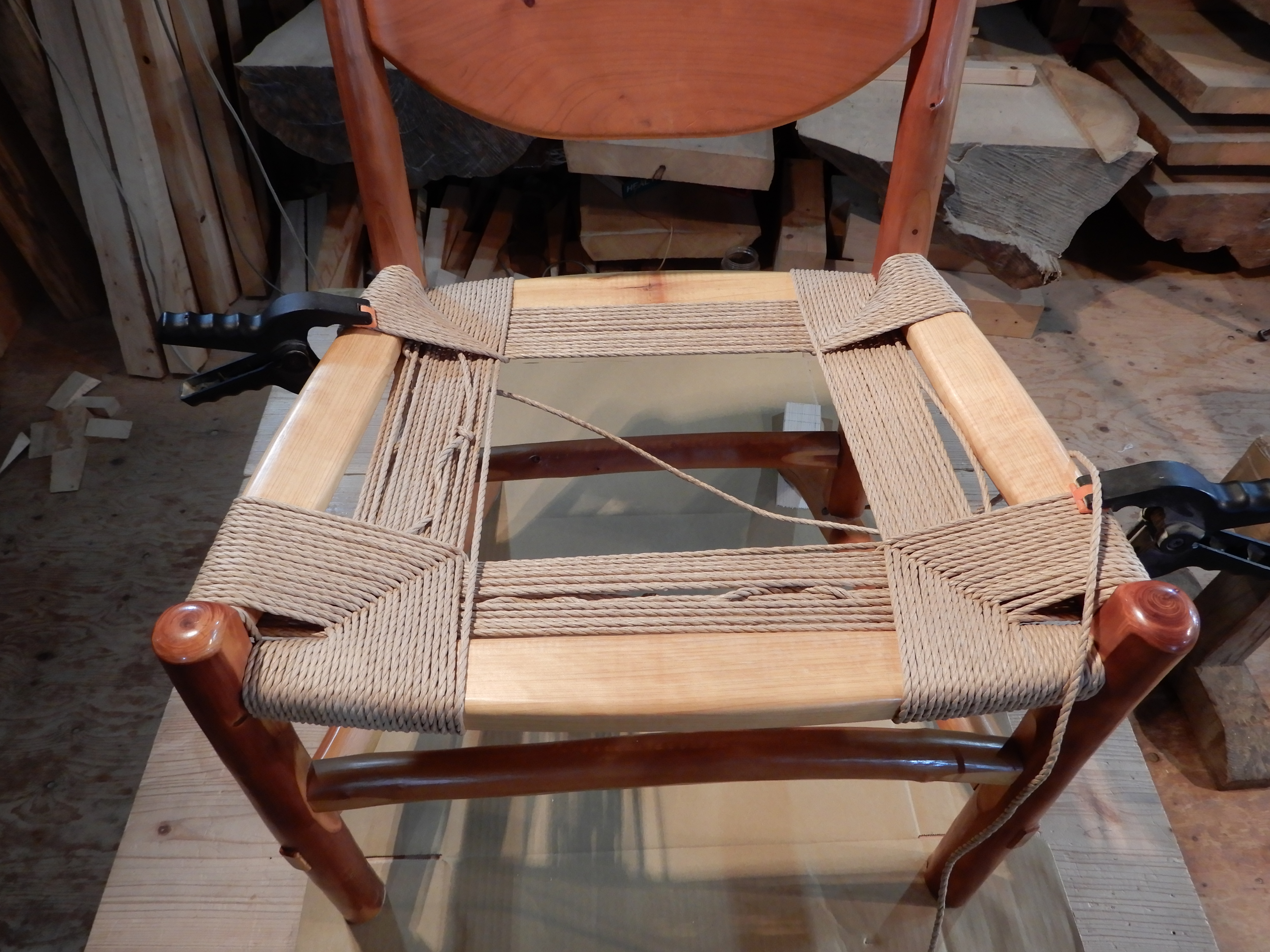 ペーパーコードのイス(コルチェア、ミディアムバック)が出来ました、とは言っても、作っていたのは、