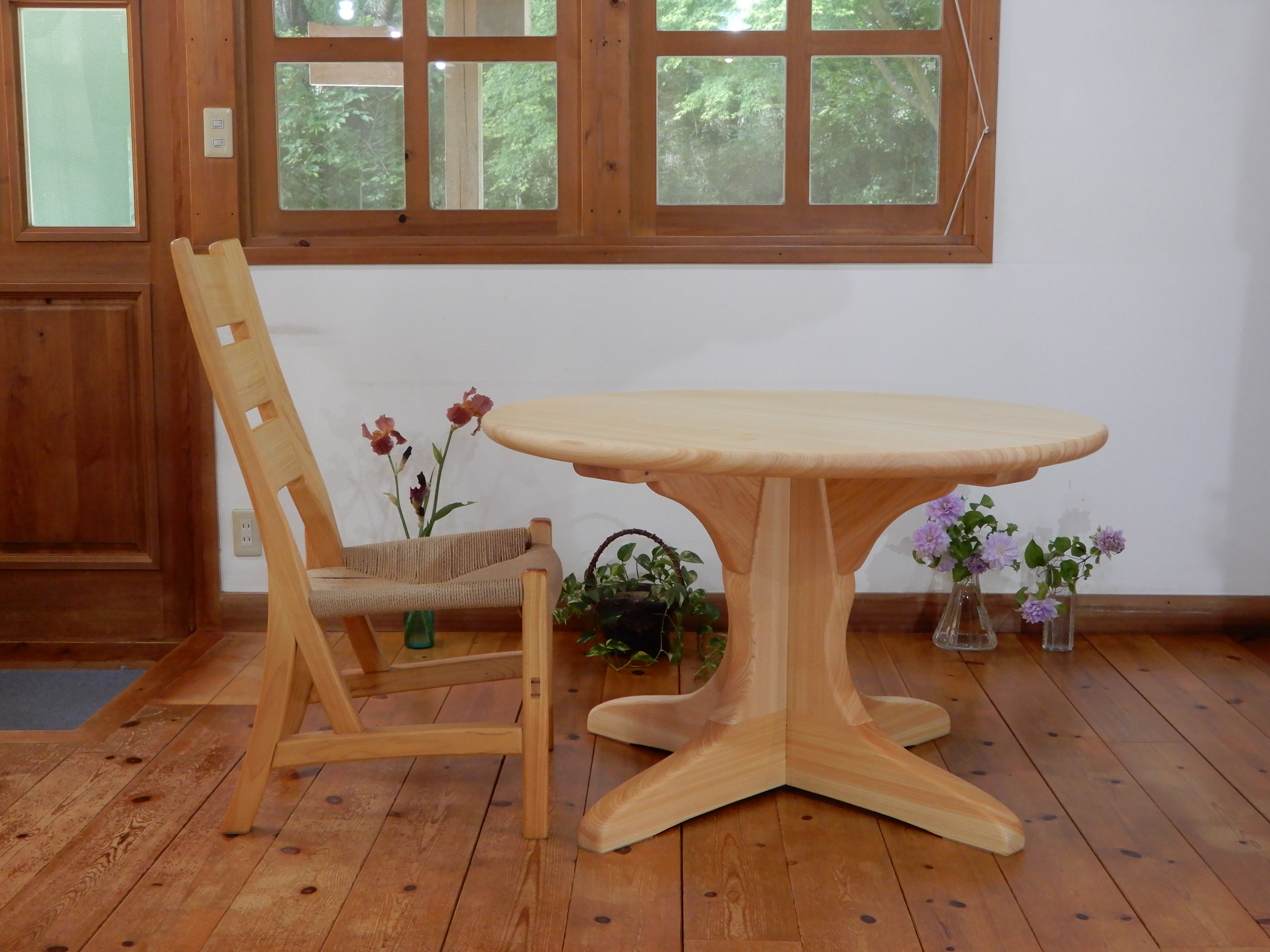 2022年5月5日、直径1,1メートルの丸テーブルができました(注文制作)このサイズは、4人掛けテーブルとしては、コンパクトサイズですが、