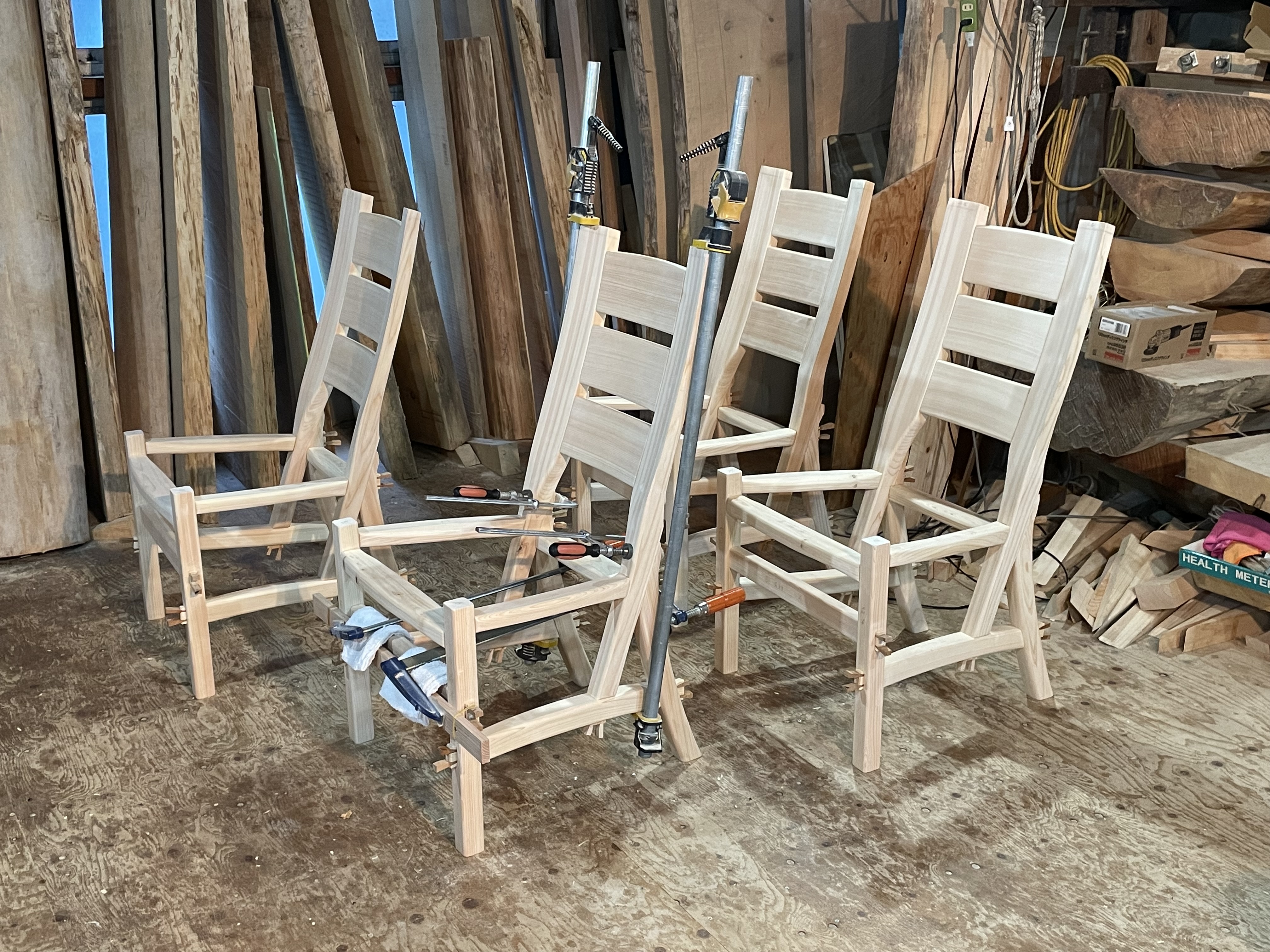 1月23日 ペーパーコードのイスを作っています、4脚まとめての制作なので、なかなか思うように進みがせんが、もうすぐ組み立てが終わります。